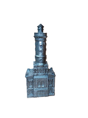 Статуэтка "Пожарная каланча Омска». Материал – полистоун (искусственный камень/полимерная смола с мраморной крошкой). Роспись красками, имитирующими металл (золото, серебро, «под кость» и пр.) с элементами старения (чернение, патинирование). Одноцветное исполнение.
