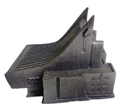 Статуэтка "Музыкальный театр Омска». Материал – полистоун (искусственный камень/полимерная смола с мраморной крошкой). Роспись красками, имитирующими металл (золото, серебро, «под кость» и пр.) с элементами старения (чернение, патинирование). Одноцветное исполнение.